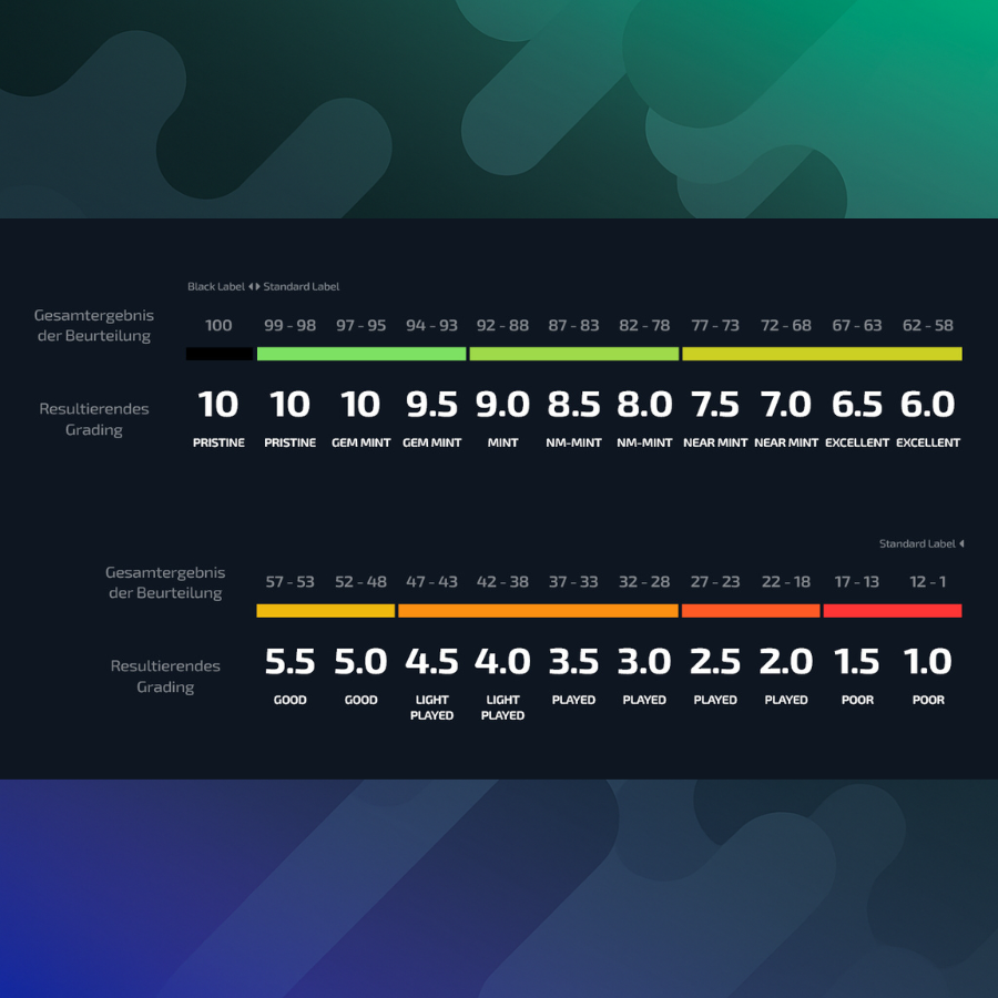 Durch diese professionelle Begutachtung bekommst du nicht nur einen verlässlichen Nachweis über den Zustand deiner Karte, sondern steigerst auch ihre Liquidity und ihren Market Value.